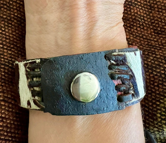 LEATHER BAND GRAY-BLACK WITH COIN - #B104